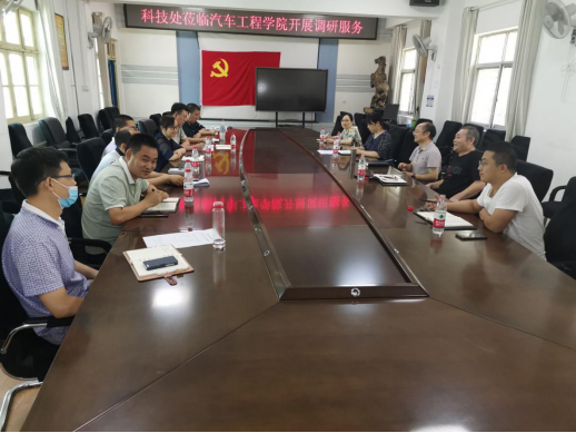 开展科研调研工作。科技处徐翔、龙丽群、黄慧、焦建杰,汽车学院班子成员及博士代表参会。