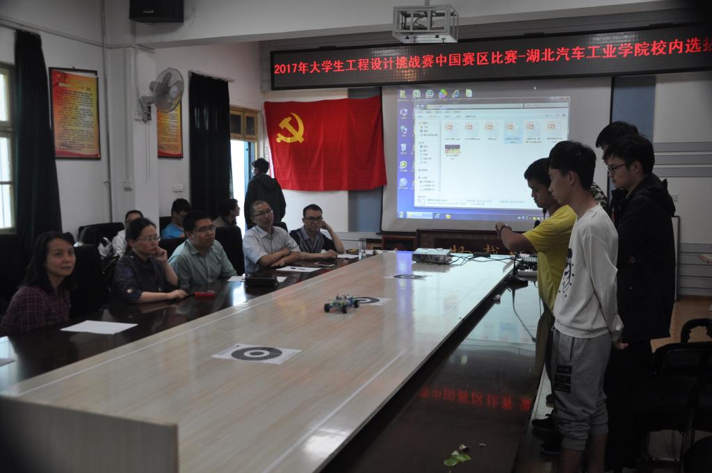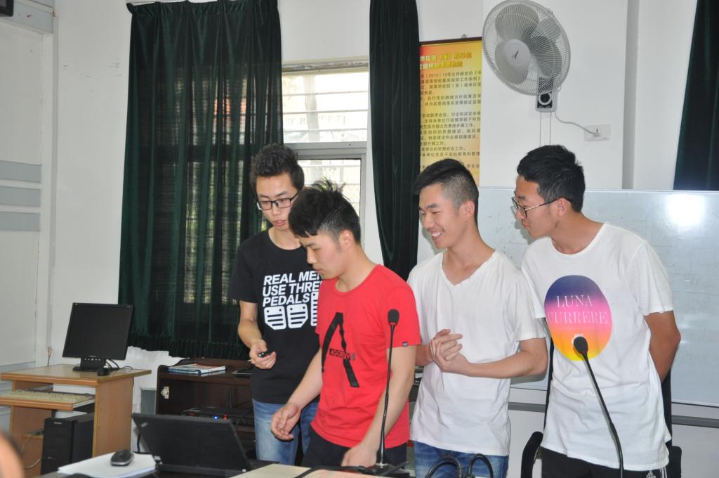 选拔赛由设计答辩和实战演练两个部分组成。设计答辩环节就如何能让小车在撞到障碍物后返回原点的问题,各参赛队详细讲解了设计方案的工作原理和思路。在众多方案中,“单刀双掷开关加线圈制动”的模式因为结构简单,可行性高获得了评委的一致认可。实战演练环节,九支队伍各显神通,从起点出发一路向前,撞到障碍物后再原路返回至起点。选拔赛中表现最抢眼的是“造小车去撞墙”团队,他们的小车无论是准确度还是稳定性都相对完美。比赛成绩将由评委综合方案的设计和实战演练两方面最终确定,通过选拔的团队将代表我校前往上海参加中国赛区的比赛。