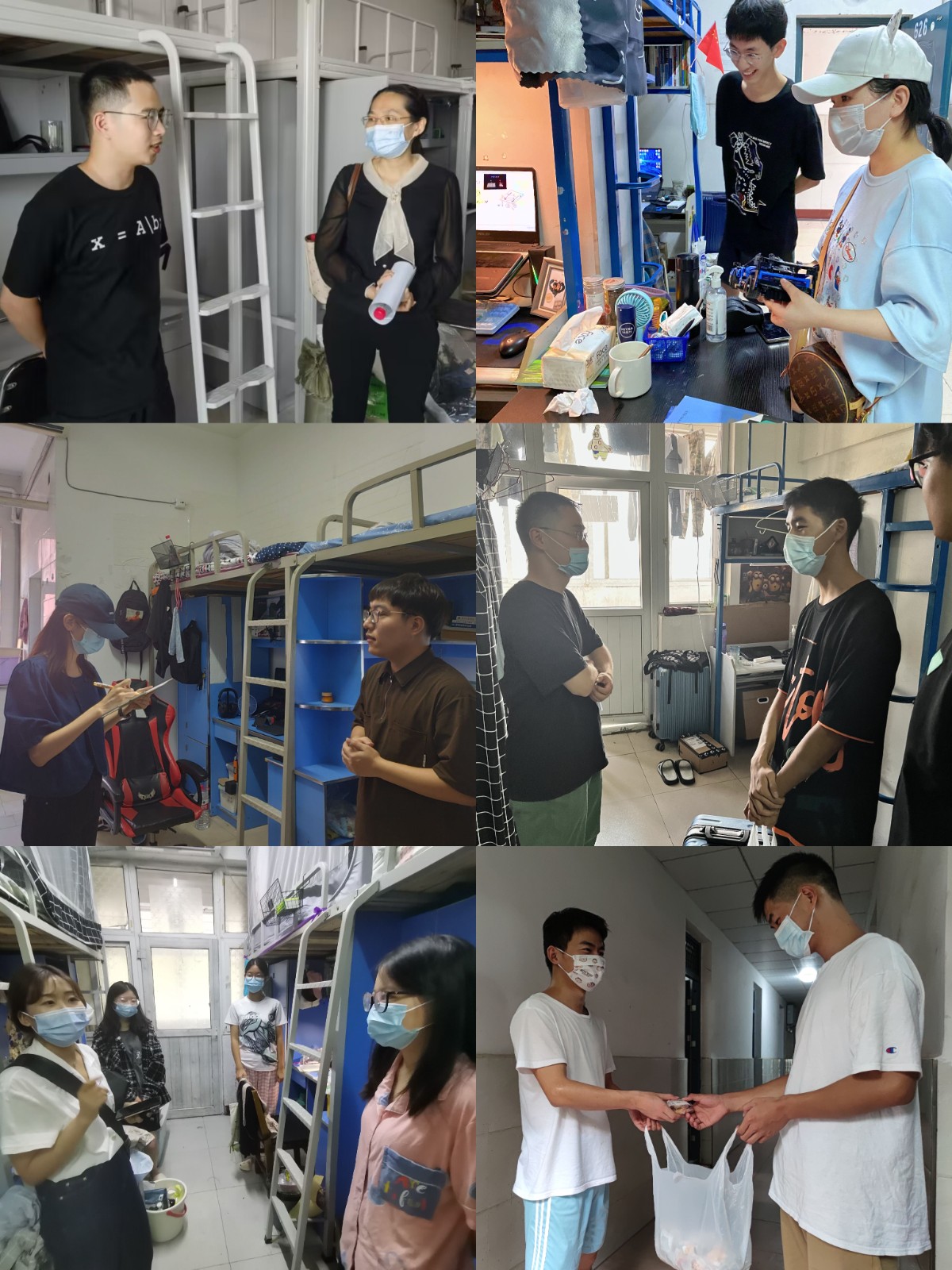 晚上走访本部宿舍过程中,学工办辅导员们与学生面对面交谈,重点了解学生学习生活上是否有困难,耐心倾听学生诉求,仔细了解学生返校后的心理状态。同时强调疫情期间学生要注意宿舍通风和宿舍用电安全,按时打扫宿舍卫生,提高自身安全防范意识,遵守学校防疫管控政策,按时完成每日健康打卡,营造良好的学习生活环境。