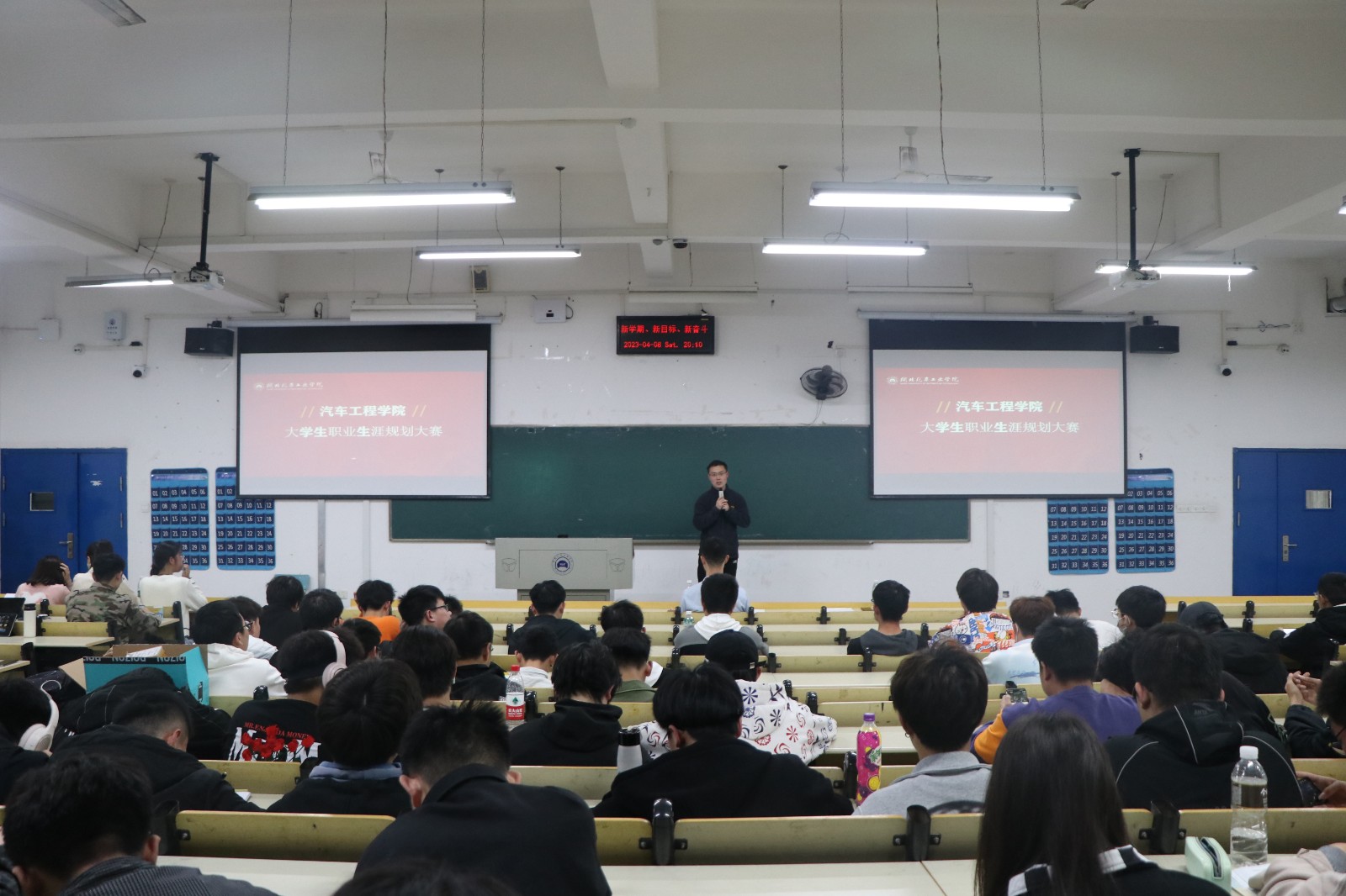 面向大一、大二学生举办了大学生职业生涯规划大赛。4月9日晚,学院决赛在6111教室进行,学工办辅导员李旭参加了此次活动。