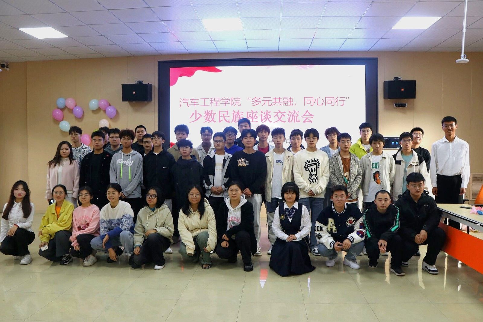11月22日上午,换妻 在汽车大院实验楼3-205教室举行“多元共融,同心同行”少数民族学生座谈交流会,学工办主任胡霄寒,学生党支部全体学生党员及少数民族同学参加座谈会。