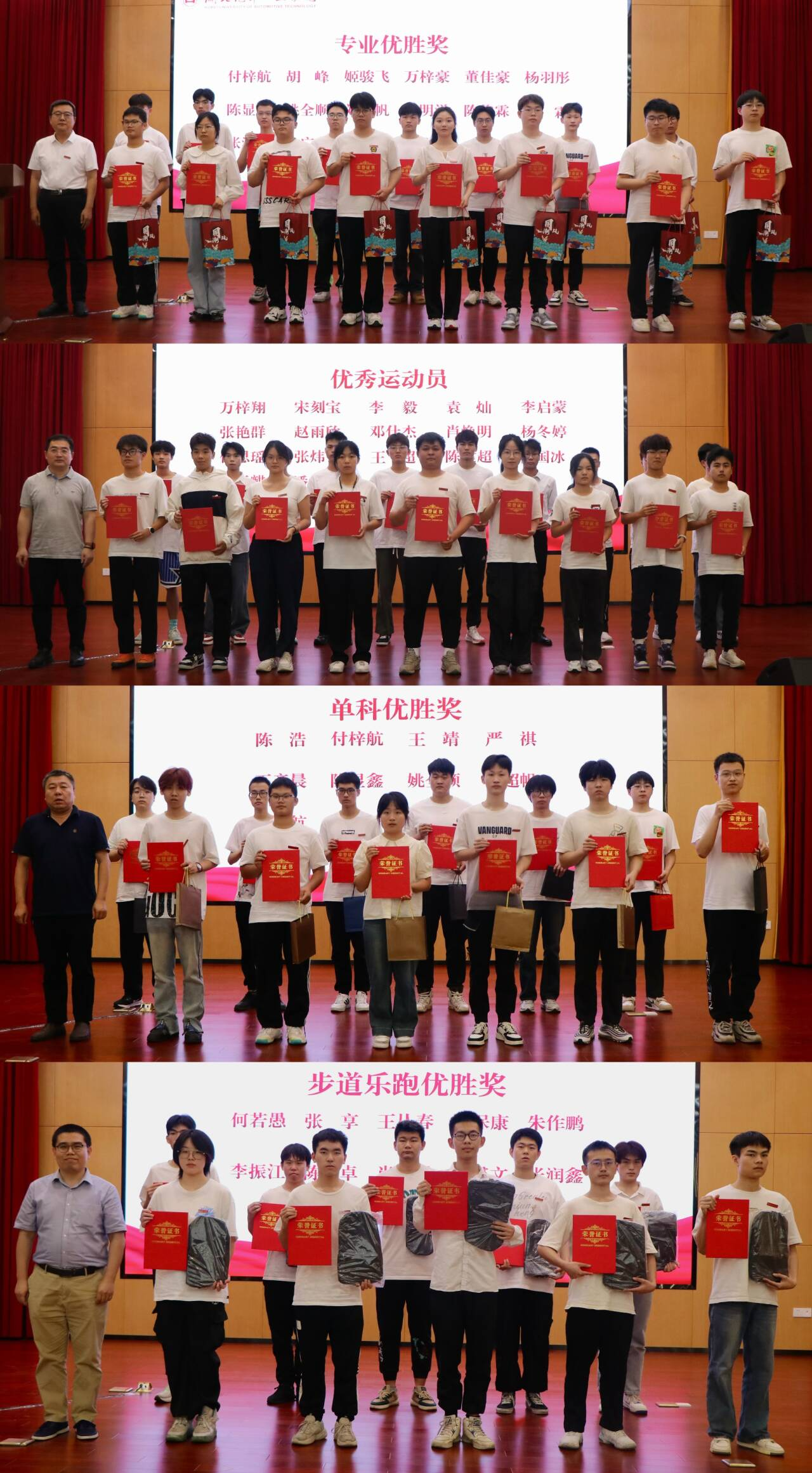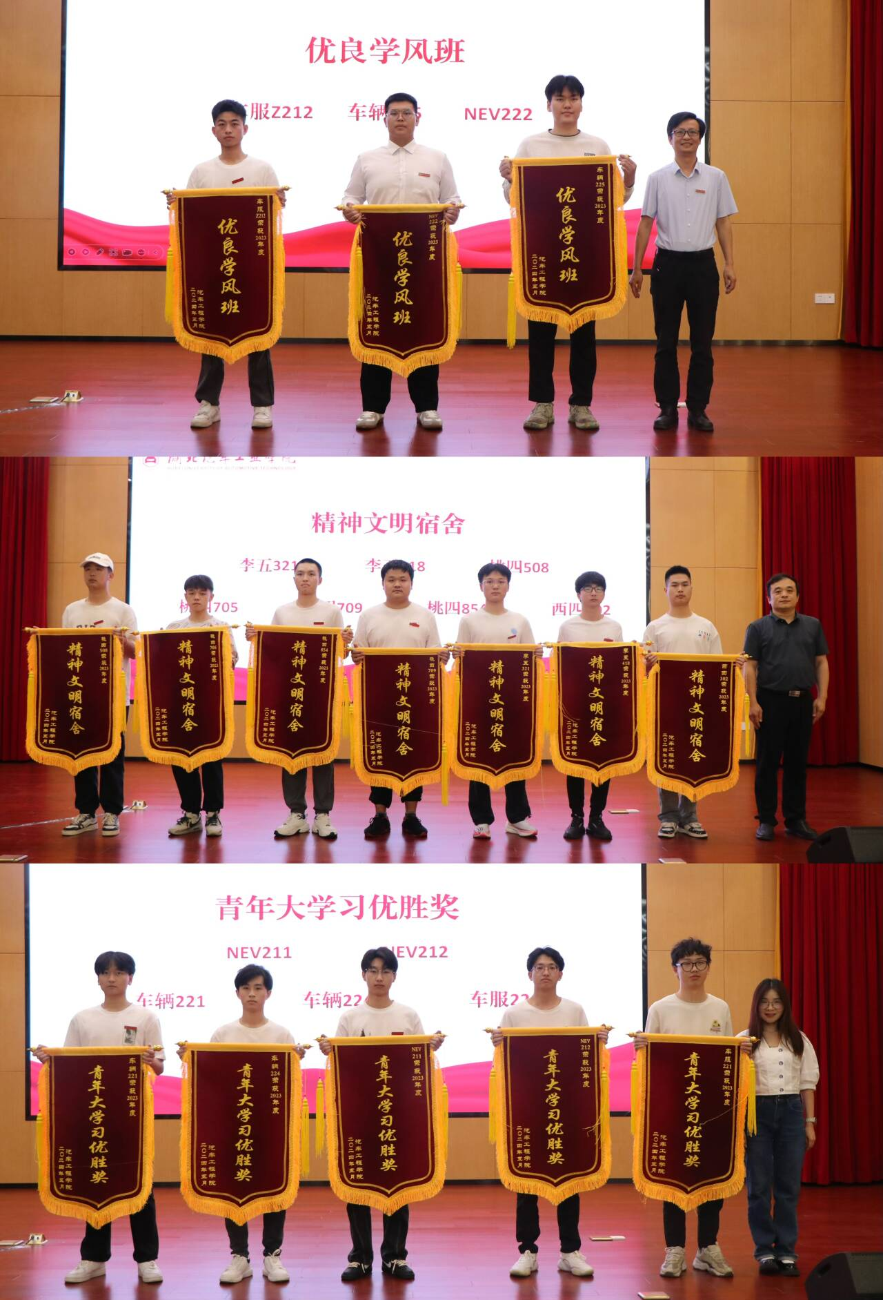 2023年度专业优胜奖、单科优胜奖、创新风采奖、优良学风班等荣誉的决定》,表彰在过去一年中,学院涌现出的一批学习优秀、学生工作表现突出的车院学子,并希望车院全体同学能够以先进为榜样,学先进、赶先进、超先进,在学习和工作上取得更好的成绩。