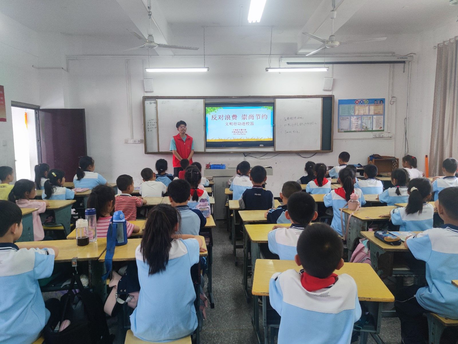 活动中,志愿者们通过视频展示、图片解读、故事分享等形式,为同学们讲解“反对浪费,崇尚节约”的重要意义,引导他们在日常生活中培养节约水电、珍惜粮食的良好习惯,号召大家从身边小事做起,弘扬节俭文明新风。