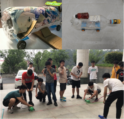 在图书馆门口顺利开展了“汽车文化节”系列活动之“气动小车”比赛。换妻