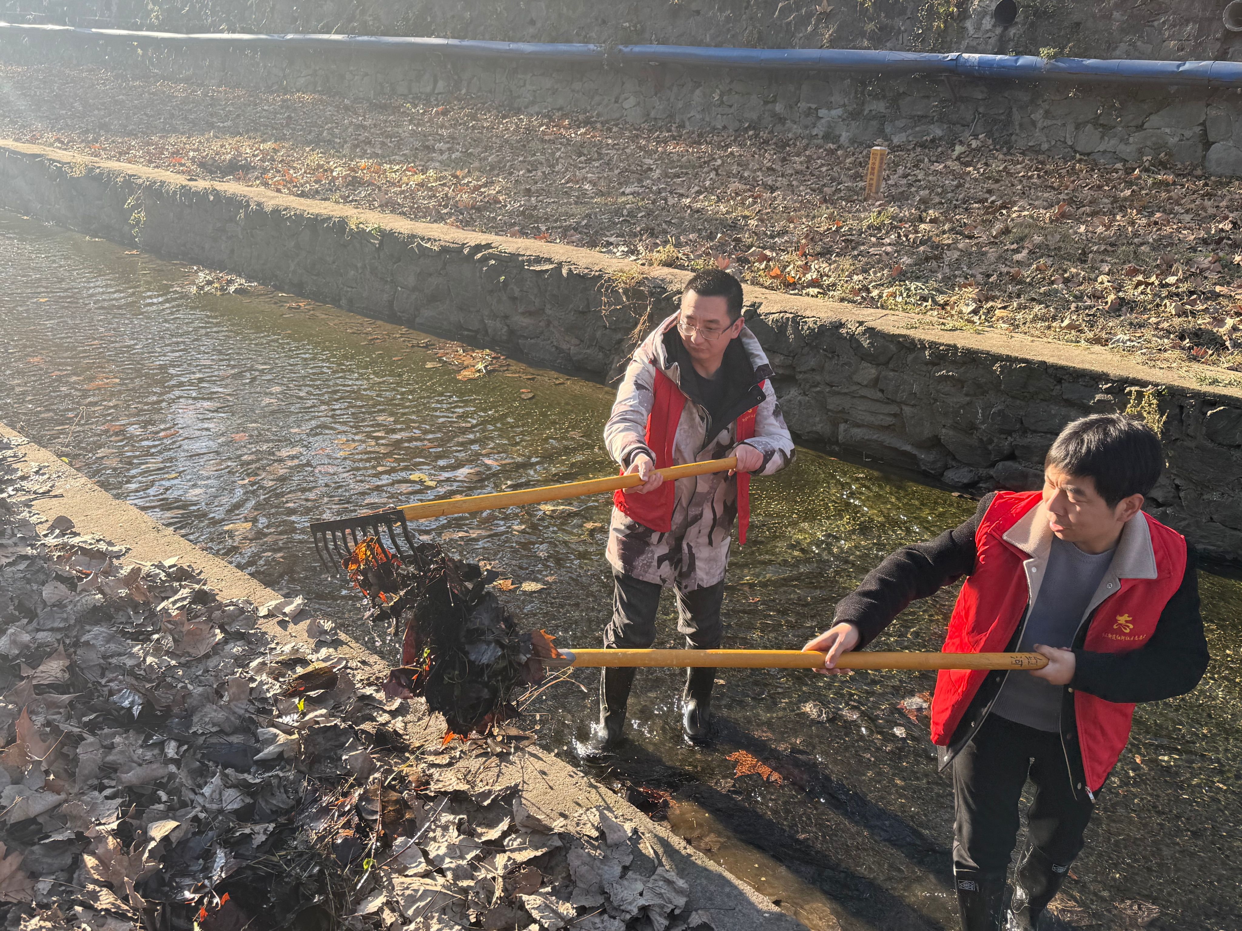 活动现场,一部分志愿者们手持长柄捞网、垃圾夹、垃圾袋等专业工具,沿着河岸有序清理漂浮垃圾、隐蔽垃圾及附着物。尽管清理工作繁重且辛苦,但他们始终保持着高度的责任心和热情。另一部分志愿者们则在社区内通过展板展示、发放宣传册、现场讲解等多种形式,向居民普及水资源保护知识,增强居民环保意识。