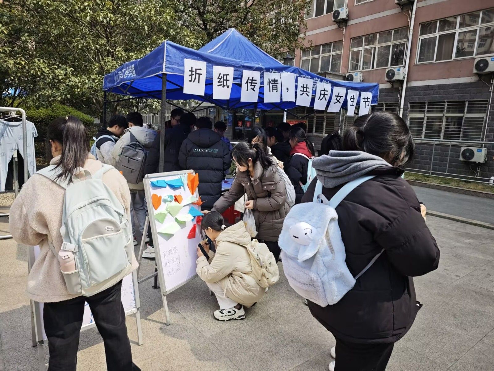 在桃园广场举办“折纸传情,共庆女生节”主题活动,以传统折纸艺术为载体,通过趣味互动倡导女性权益,为全校女生送上节日祝福。