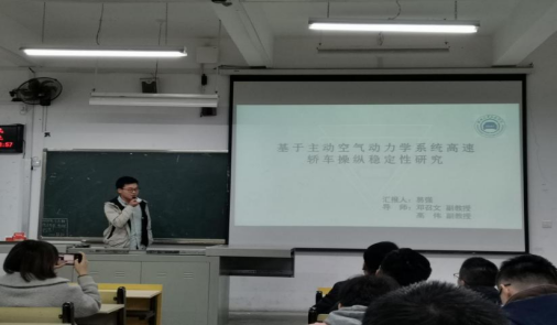 2019级研究生袁威、易强作为本次活动的主讲人,分别向大家作了主题为“基于hyperstudy联合dyna与optistruct的客车骨架多学科优化”和“基于主动空气动力学系统高速轿车操纵稳定性研究”的报告。