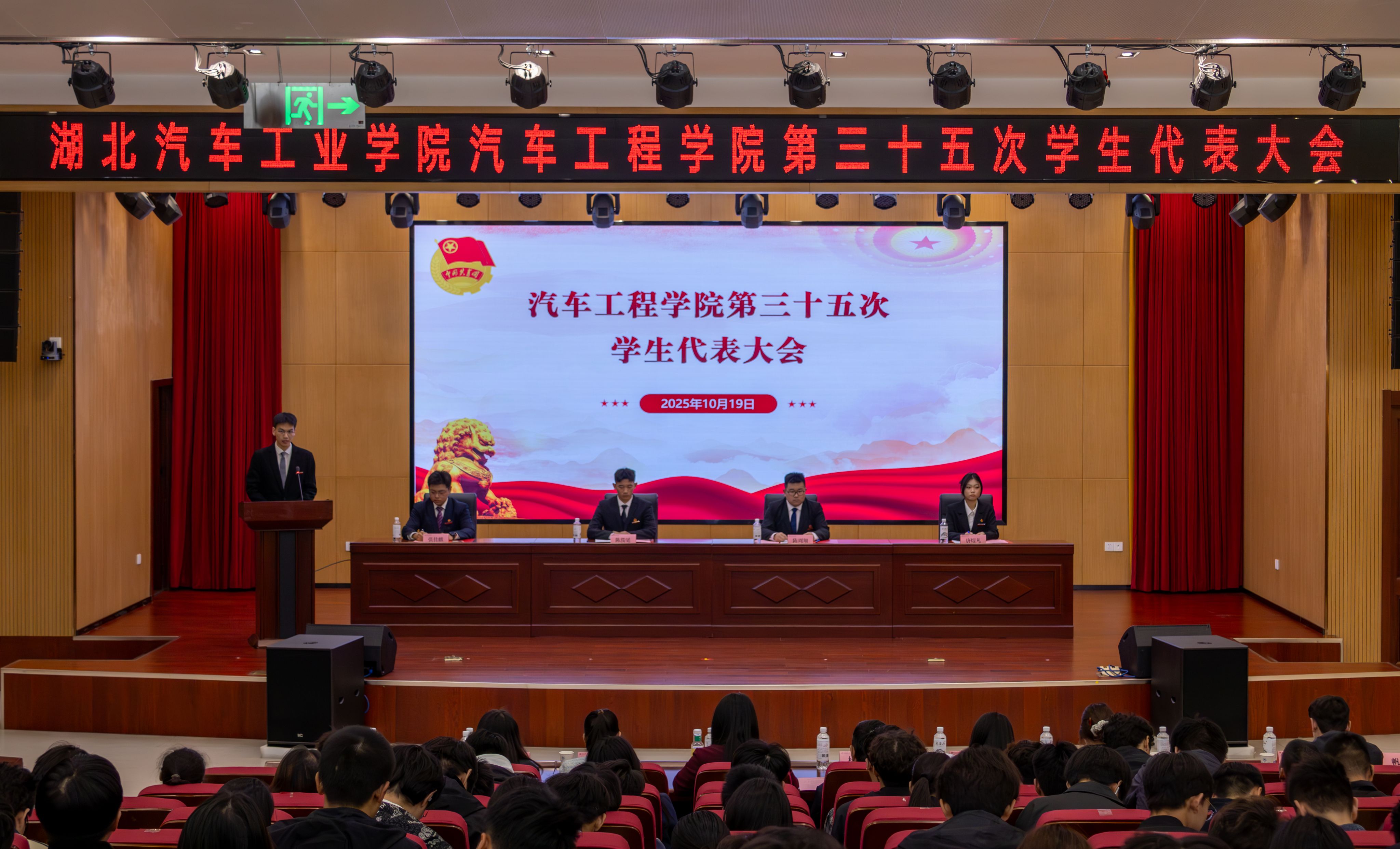 本网讯(文 迪力亚尔/图 夏奕)2025年10月19日18:30,换妻 第三十五次学生代表大会在产教大楼四楼报告厅顺利召开。学院党委书记杨亚会、副书记周彬、全体学工办老师及219名学生代表参加会议。