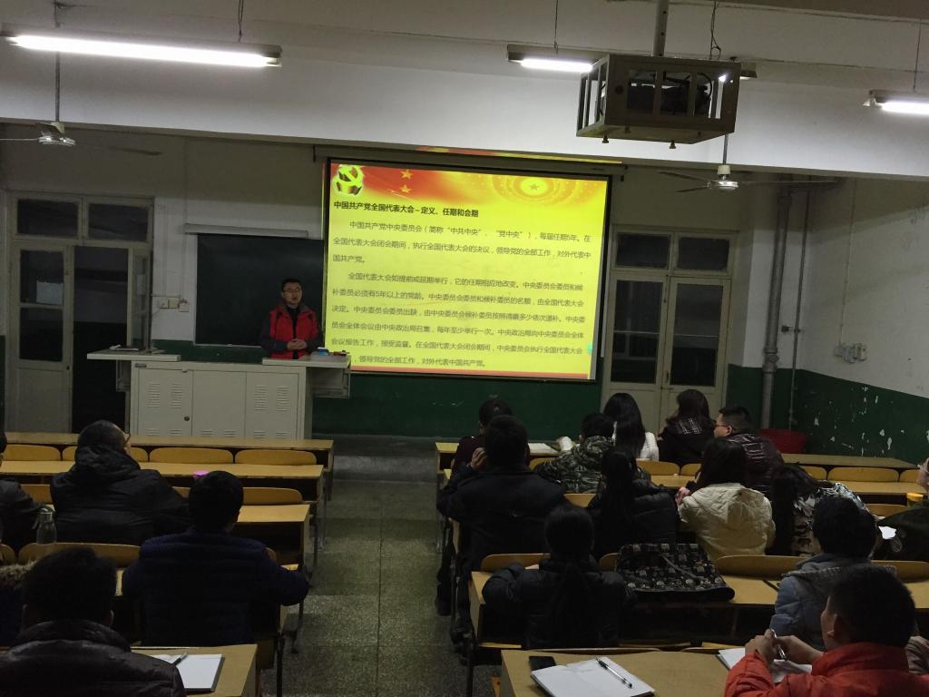 会议伊始,陶伟老师带领各学生党员回顾了共产党历届代表大会的召开背景、时间及内容。他在会议上指出,作为一名学生党员,应该时刻关注国家政事,时刻关注中国共产党的发展,更要对党的基本知识了然于胸,争取做一名真正用心跟党走的学生党员。