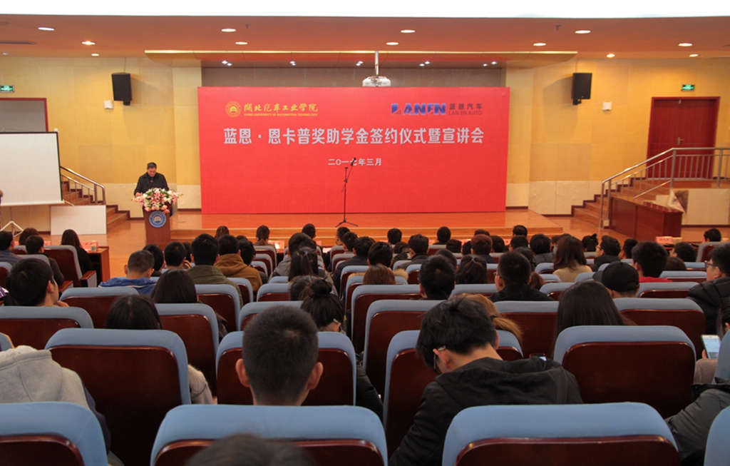 武汉蓝恩新能源汽车产业发展股份有限公司业务部部长张锐、总经理助理李舒、整车部部长周晓婷、改装部部长尹航、环保油耗部部长周美玲、综合管理部经理窦晓红,我校学工部部长王文山、校党委宣传部副部长陈战峰、各二级学院分党委(党总支)书记及来自各院系的数百名学生共同参加了本次活动。