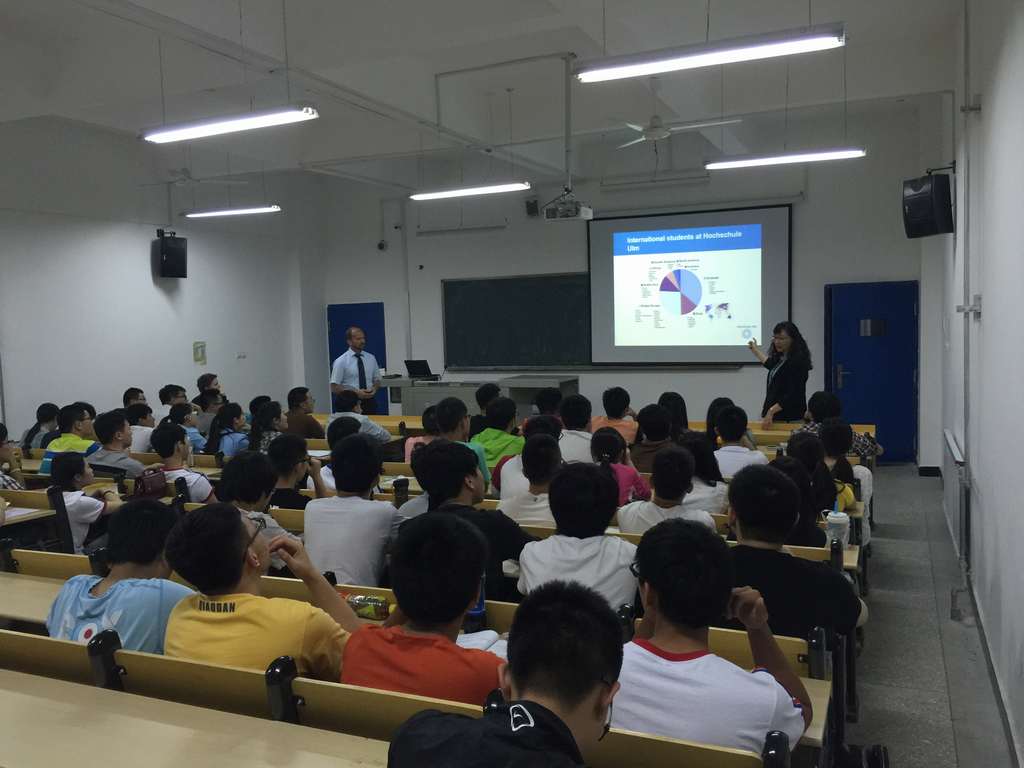 对外合作交流工作。6日下午和7日白天,Dr. Watty教授对今年9月即将赴德国学习的11位学生进行了笔试和面试,并确定了赴德学生人选。7日晚,Dr. Watty教授为我校正在准备赴德学习的2012、2013、2014级学生作了专题讲座,对乌尔姆应用科技大学的地理位置、教育模式、专业设置、教学资源、科研设备和国际合作交流等作了全面介绍。在场学生也纷纷就自己感兴趣的话题用德语与Dr. Watty教授进行了沟通,为有意赴德学习的学生全面了解乌尔姆应用科技大学创造了一次良好的机会。8日,在换妻