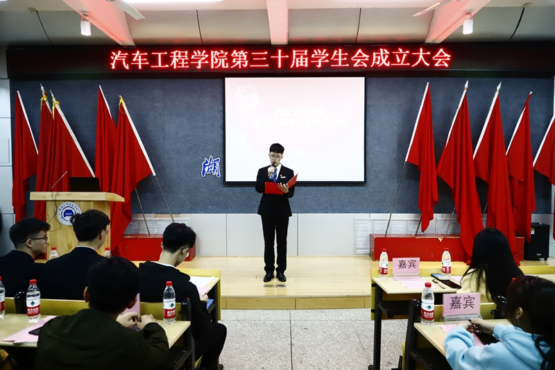 第三十届学生会成立大会于6113报告厅隆重举行,分党委副书记李秀峰、分团委书记胡霄寒、学生党支部书记李雅琨、20级班主任王晓晨、校学生会分管主席张顺雨、兄弟学院主席团成员代表、车院第三十届学生会全体成员及20级全体新生参加了此次大会。