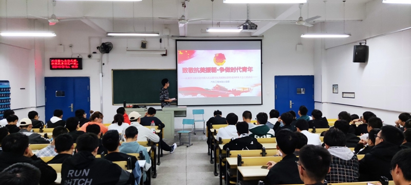 分团委于6305、6307、6308、6312教室组织开展“致敬抗美援朝,争做时代新人”主题团课,分团委副书记杜新宇、20级全体学生参加了此次活动。