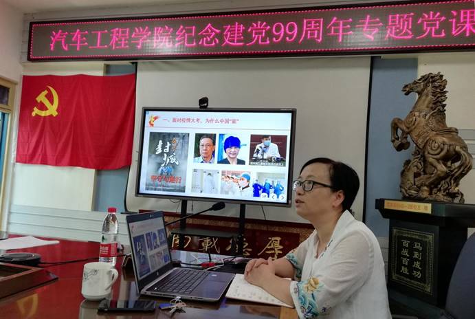 讲课中,冯樱围绕“面对疫情大考、为什么中国能?”、学校“‘升大’要体现车院‘能’”、“‘三风建设’如何深化”三个方面进行全面简介。具体讲解中,冯樱围绕党的十九届四中全会精神学习体会,指出在抗议期间,人民至上的执政理念得到充分诠释,全国一盘棋的防控思路充分体现了国家强大的治理效能,有力的防控效果体现了中国速度、中国力量、中国活力、中国担当和中国精神。具体到我们学校和学院,也有大量的师生党员积极响应学校号召,主动请战,其中我院11名职工发扬无私奉献、敢于担当的精神,协助做好校园管控和服务志愿者,以实际行动诠释了共产党员和基层干部的责任与担当。结合学校“升大”目标,她具体分析了学校的现状与今后努力的方向,她强调“升大”关系到每一个教职工的切身利益,责任重大,任务艰巨,希望每一位教职工能立足本职岗位,切实完成各自教学、科研、管理任务。最后,她重点围绕“三风建设”进行阐述,强调要以学生为中心、成果导向、持续改进教学工作;要不断提升科研水平,积极参与管理工作;要切实提升学风建设成效,以更高标准提升学生整体学业水平。