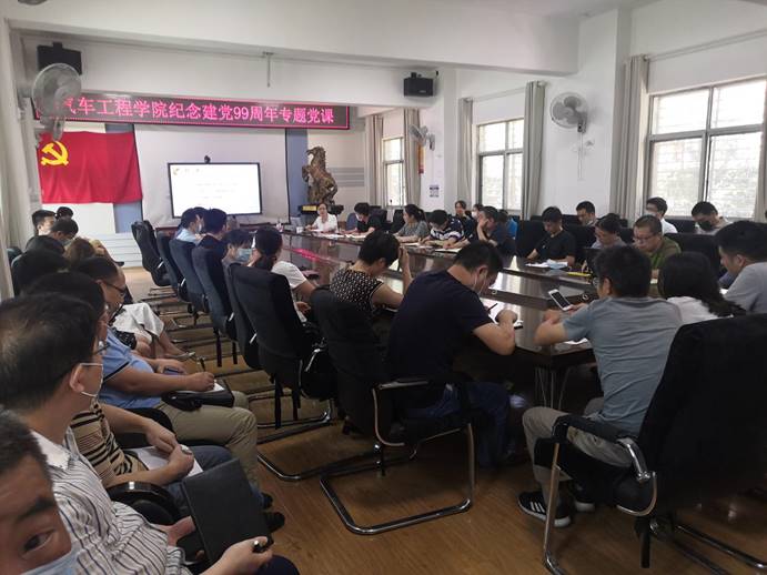 分党委书记兼院长冯樱在学院大会议室为学院全体教职工讲授了纪念建党99周年专题党课。党课活动由副书记李秀峰主持。