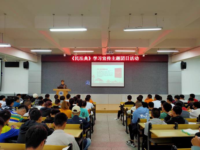 于6113报告厅开展了《中华人民共和国民法典》宣传学习主题团课活动,分团委副书记杜新宇、20级近300名新生共同参加。
