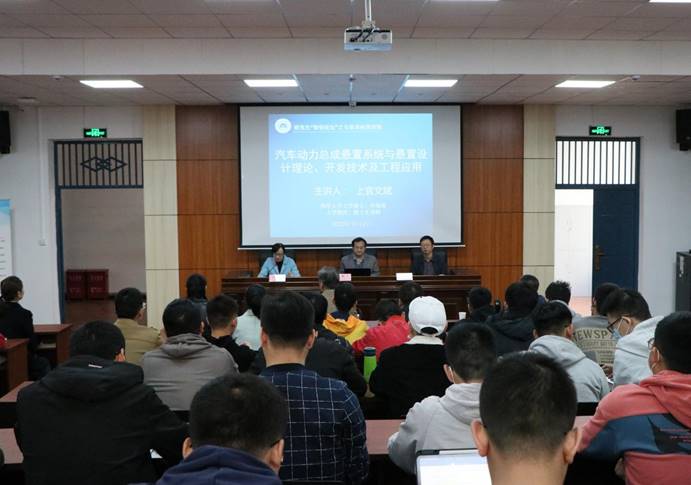 、机械工程学院的研究生们作了主题为汽车动力总成悬置系统与悬置设计理论、开发技术及工程应用的学术报告。在报告中,上官教授深入浅出地从悬置系统设计计算分析方法和悬置系统的开发流程、半主动悬置和空气阻尼悬置的设计方法与开发技术、动力总成悬置系统对汽车噪声有重要影响等几个方面详细地进行了讲解,强调当前学术界对动力总成悬置系统研究相对较少,对车身和零部件等研究颇多,并重点介绍了汽车动力总成悬置设计理论、开发技术及工程应用目前所取得的成绩。在互动交流环节,上官教授热情地从专业的角度认真严谨地回答了同学们提出的问题,并结合自己的学术经历,分享了自己的学术追求、学术心得和研究经验,并鼓励大家世上无难事、只有肯攀登。