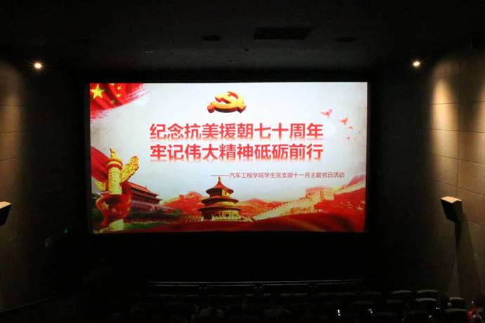 学生党支部于CGV电影城开展了“纪念抗美援朝七十周年·牢记伟大精神砥砺前行”主题党日活动,活动内容分为理论学习和观看电影《金刚川》两部分。车院学生党支部书记李雅琨、学生党员、发展对象、积极分子参加了此次活动。