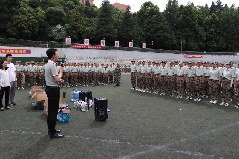 随后,杜昕俊带领着老师、学生干部们将300多瓶不同品类的饮料和补充能量的士力架一一送到了学生们手中,军帽下绽放开了一个个清甜的微笑。此次的军训慰问活动,不仅为烈日下的学生们送来了清爽缓解了疲劳,也提高了学生们对学院的认同感和归属感,更展现了学院以学生为本、为学生着想的关怀理念。
