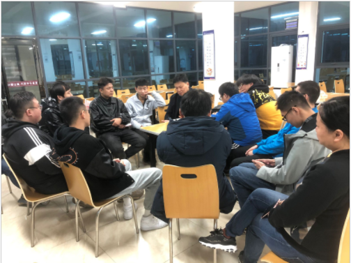 在基地的景鸿餐厅,石振东、石振、李莹老师与前期已在到襄阳群龙汽车部件有限公司实习的学生进行了交流座谈,详细询问了他们实习情况,对他们在实习过程中遇到的疑问进行了耐心细致的解答。
