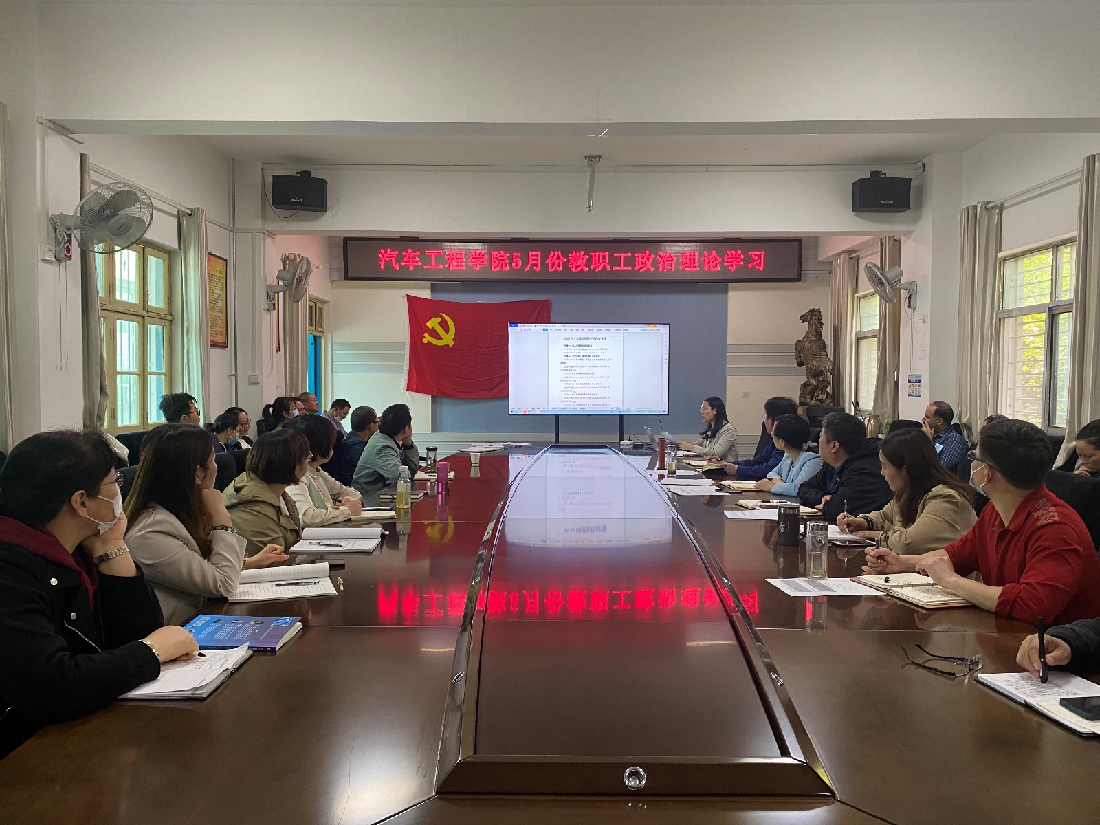 全体教职工在学院二楼会议室开展了5月份教职工政治理论学习活动,会议由分党委书记李秀峰主持。