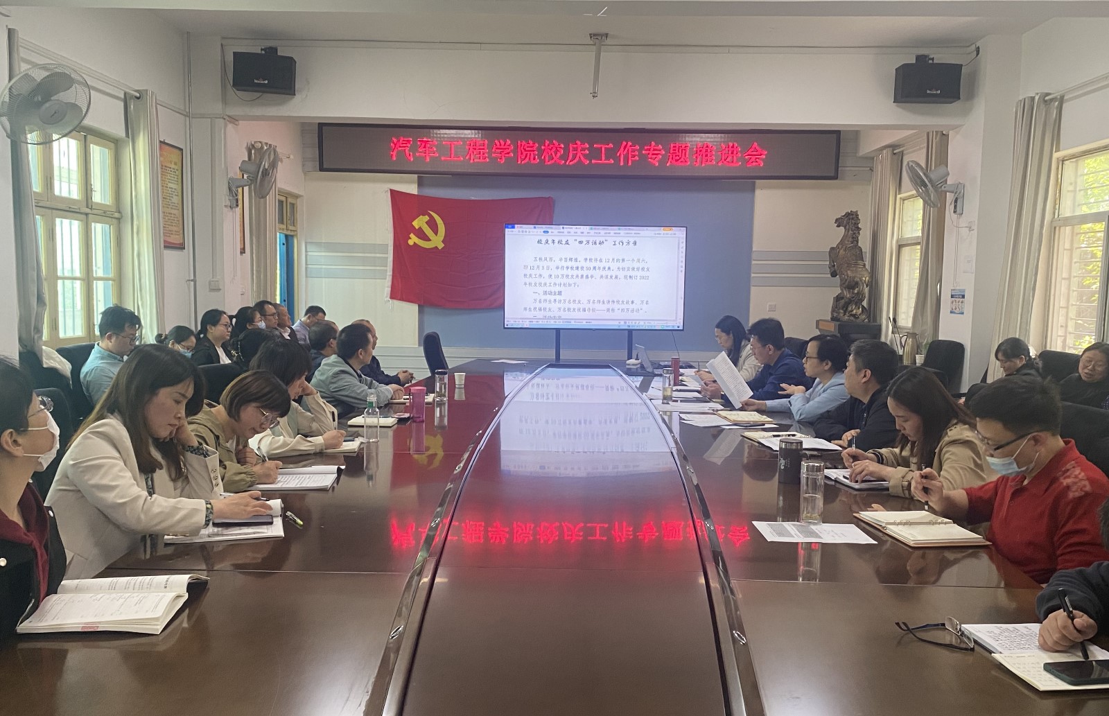冯樱首先传达了学校《关于抓好校庆倒计时200天重点工作的通知》文件要求和学校校庆工作推进会的会议精神,对学院近期要开展的校庆重点工作做了部署。副书记杜昕俊对校庆年校友“四万活动”工作方案内容做了介绍,并对前期开展的工作情况进行了汇报。