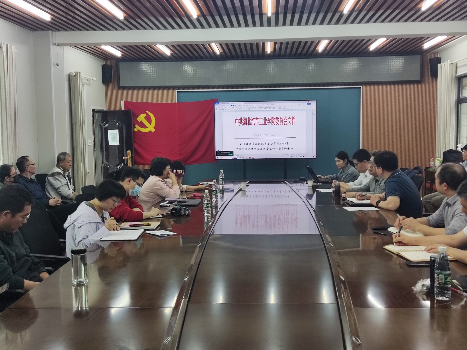 组织全体教职工在学院二楼会议室集体学习学校近期重要会议精神,分党委书记杨亚会主持学习活动。
