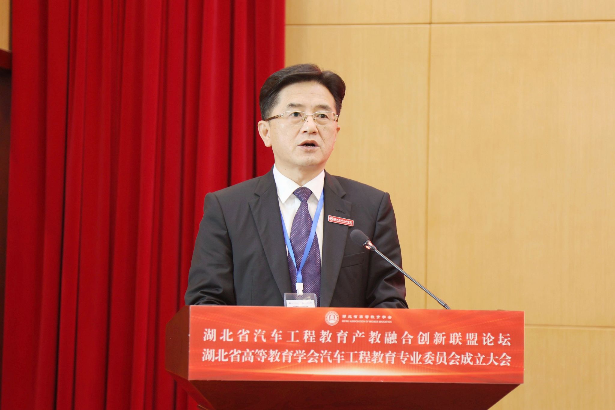张文学在开幕致辞中介绍了我校的发展历程、“三步走”发展战略和围绕汽车产业链形成的学科优势与专业特色。张文学指出,汽车工程教育专业委员会的成立是健全湖北高等教育学会分支机构体系的一件大事,也是面向湖北所需、行业所盼、未来所向的一件实事。汽车工程教育专业委员会为我省汽车工程教育工作者搭建了一个相互交流学术观点、研究成果和工作经验的平台,进一步推动汽车工程相关领域理论与实践研究,深入推进汽车产业人才培养和政校企产学研融合。