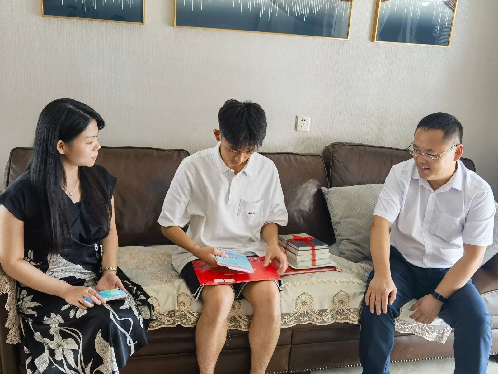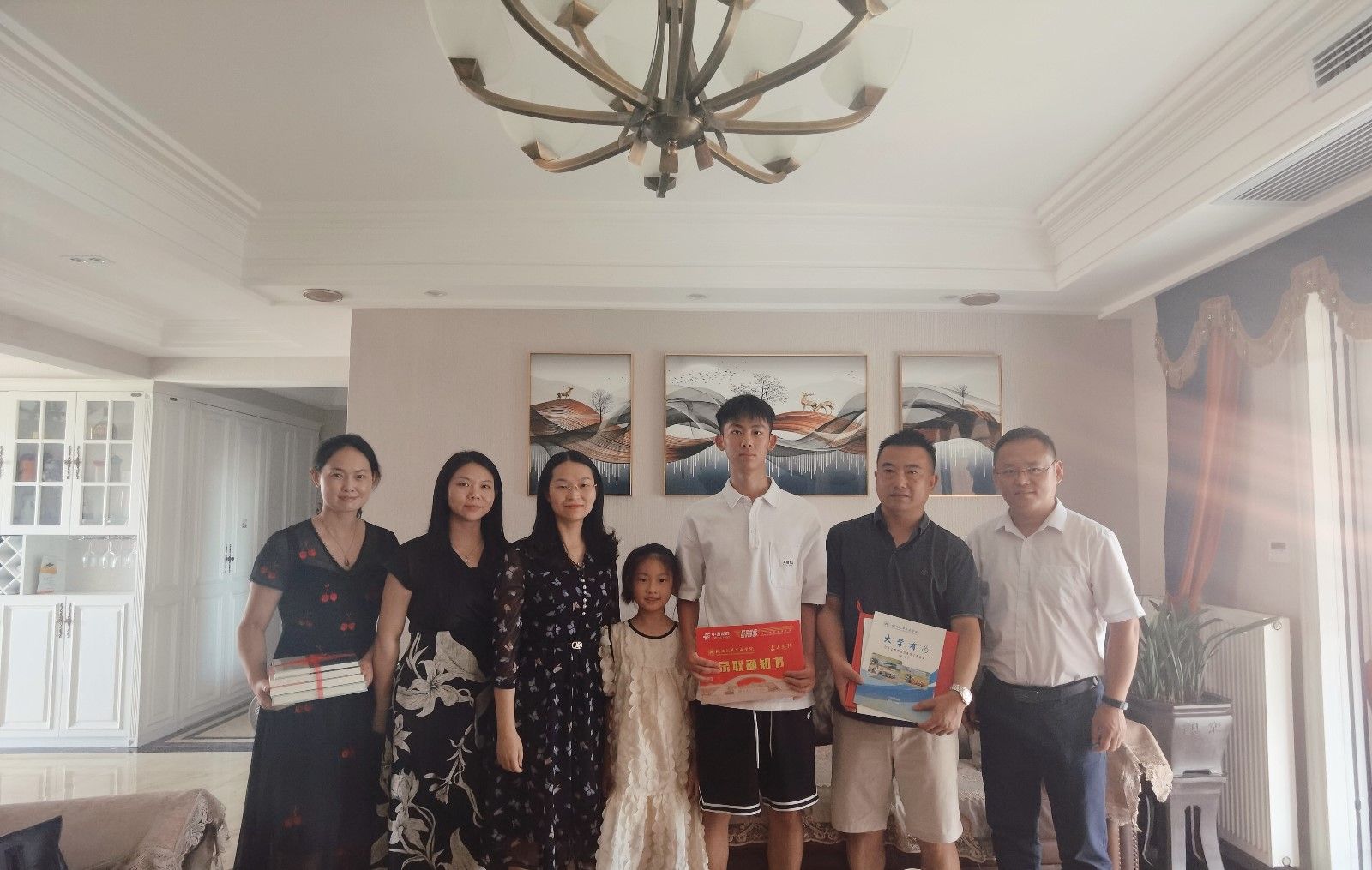 分党委副书记周彬及学院2023级新生辅导员李雅琨等一行化身“邮递员”,历时三个多小时从十堰赶到枣阳市,将录取通知书和精心准备的“大礼包”,亲手送到了换妻