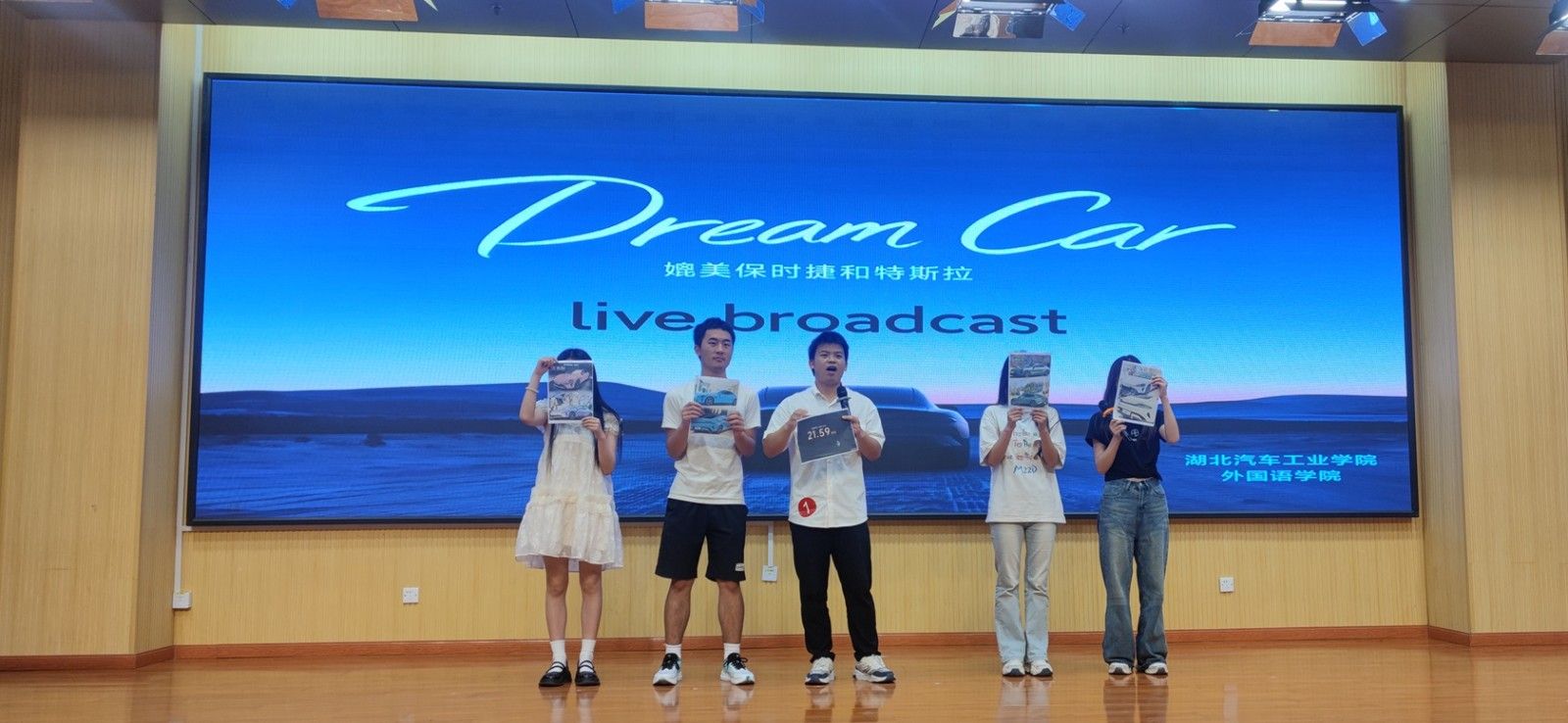 共有6个学院的代表队从前期的预赛中脱颖而出进入到现场决赛,选手们要通过风采展示、知识问答等环节来角逐达人桂冠。在风采展示环节,外国语学院代表队结合自身专业所学,现场用英语为大家带来了一段生动有趣的小米汽车线上发布会;精彩的表现也赢得了观众的阵阵掌声。