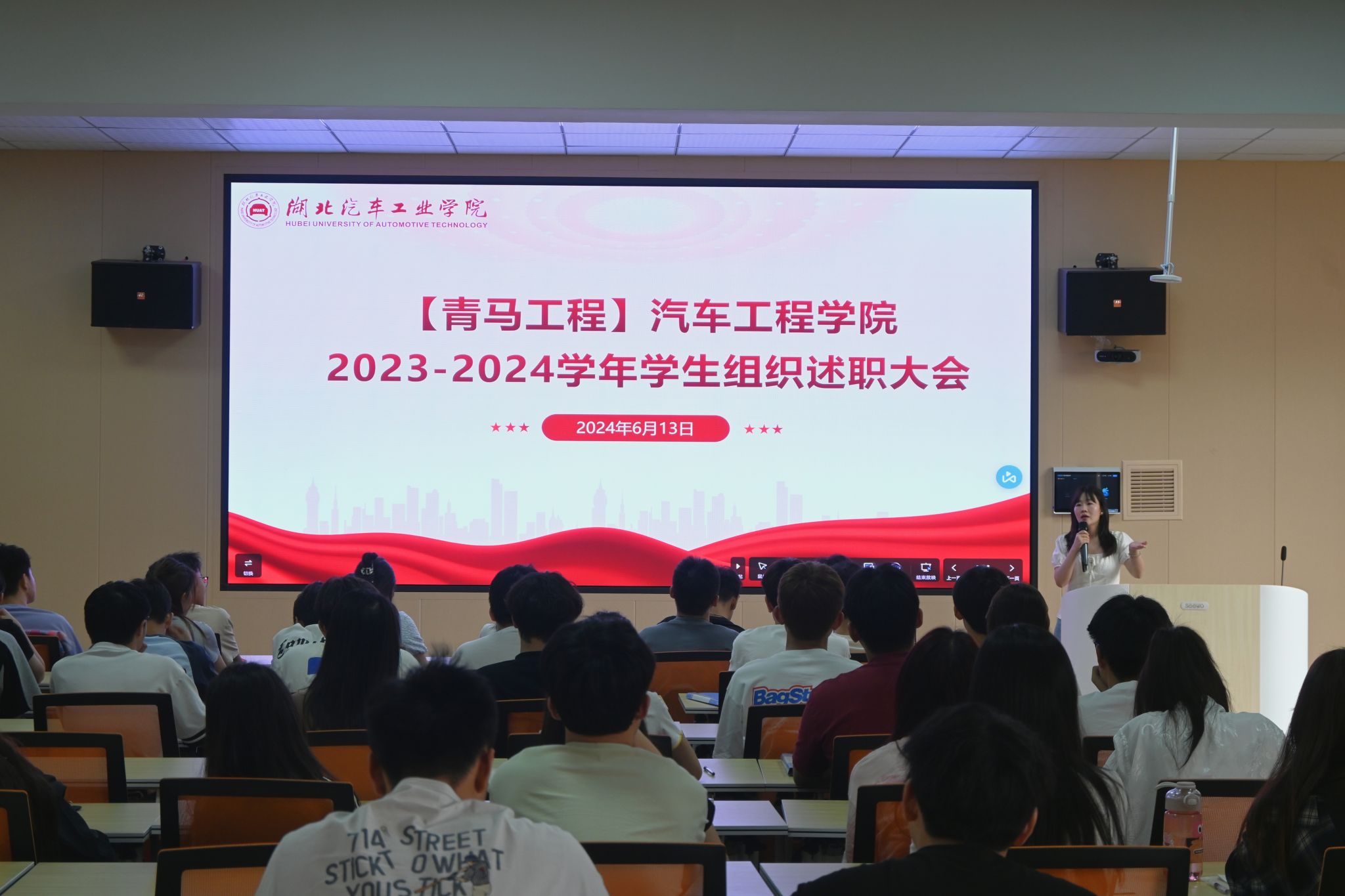 在职工之家开展2023-2024学年学生组织述职大会,学工办主任胡霄寒、辅导员甘甜,学生组织主席团、中层干部以及全体部员参加此次大会。