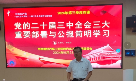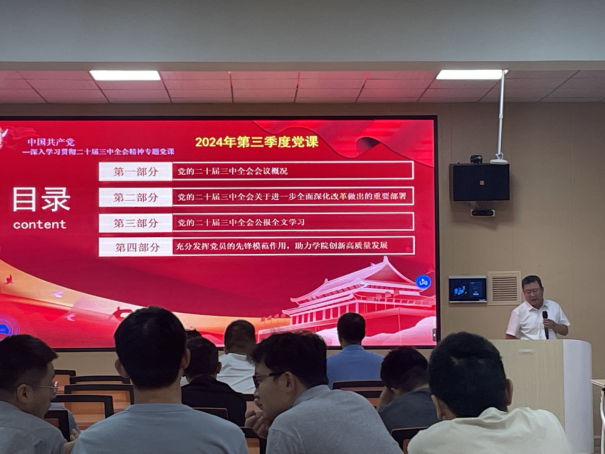 召开全体教工党员会议,由分党委书记杨亚会讲授主题为“党的二十届三中全会三大重要部署与公报简明学习”的党课。