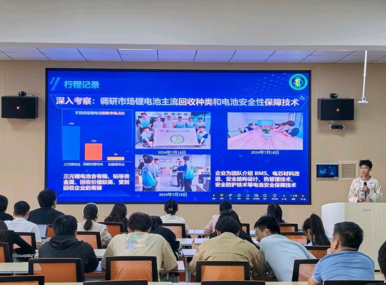 2024年共组建了43支“三下乡”暑期社会实践队伍,累计245名学生参与。经学院分团委初评和复审,共计有4支优秀队伍进入院内终选答辩环节。其中,“源和”锂绿同行电池产业调研实践团队表现尤为突出。他们不仅在锂电池回收技术的研究上取得了显著成果,还成功发表了SCI论文,获批2项发明专利,并发表了1000余篇新闻稿件。此外,该团队还受到了学习强国、人民日报、中国日报等数十家知名媒体的广泛报道,科普宣传活动也赢得了现场的一致好评。(审稿 周彬)