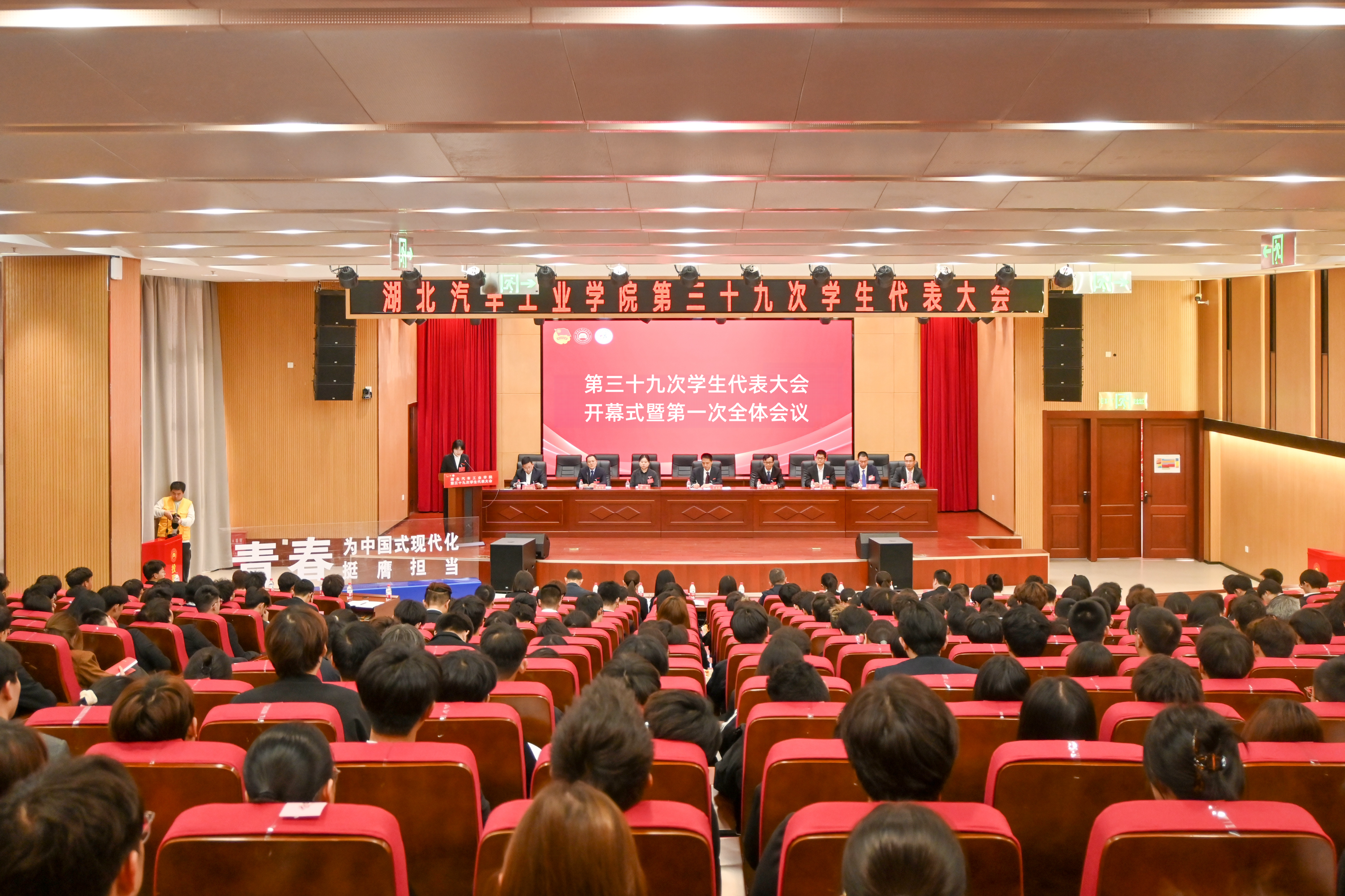 第三十九次学生代表大会在产教大楼四楼报告厅隆重开幕。党委常委、党政办主任王文山,团市委学少部部长、市学联秘书长曾媛,学工部部长王关锋、组织部副部长李亚洲、教务处副处长李行国、创新创业教育学院副院长张国法、保卫处副处长张华,二级学院分党委副书记,第三十九次学生代表大会全体代表参加大会。开幕式由校团委书记杜祥军主持。