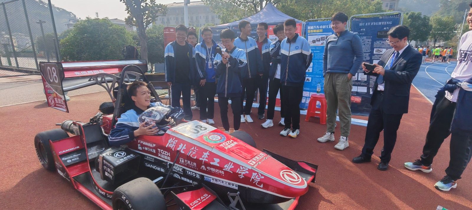 分党委副书记周彬率东风HUAT大学生方程式赛车队师生一行7人,参加该校第51届田径运动会暨第11届科技艺术节开幕式。