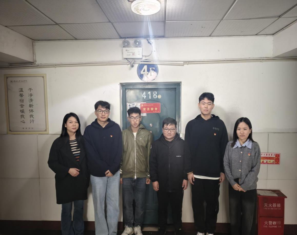 在桃园四栋学生宿舍举行了以“亮身份、树形象、践承诺、争先锋”为主题的学生党员宿舍挂牌活动,学院分党委副书记周彬、学工办主任胡霄寒,学工办全体辅导员及学生党员参加本次活动。