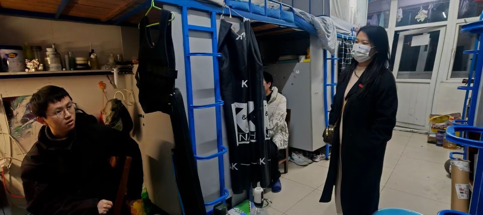 分党委副书记周彬带队走访学生宿舍,慰问寒假留宿学生。