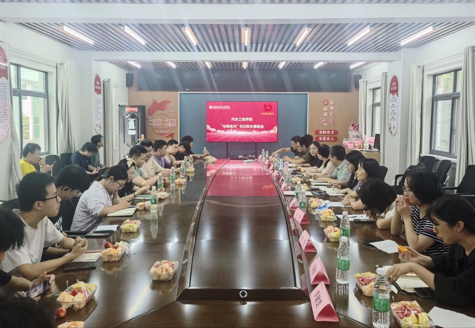 “与青拾光”书记院长餐叙会在“一站式”学生社区党员活动室温情举办。学院党委书记杨亚会、副书记周彬、系主任王天田,教授冯樱、李楚琳、周红妮等车辆工程专业教师代表与15名车辆工程专业毕业生代表围坐一堂,围绕学业困惑、生活难题与成长规划展开面对面交流。