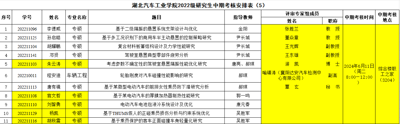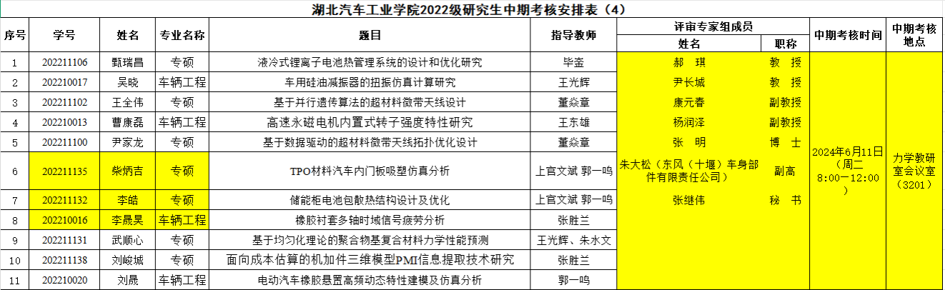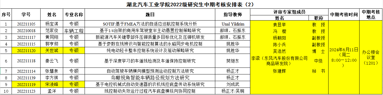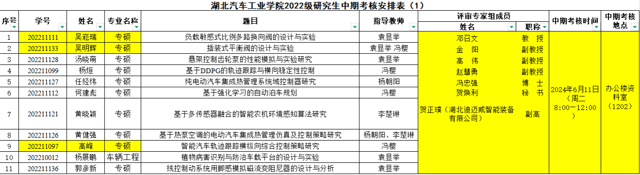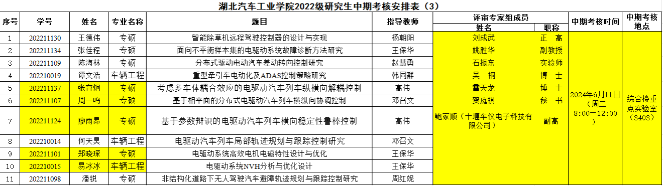 2022级研究生注意,以下是中期考核答辩安排表,请各位同学悉知: