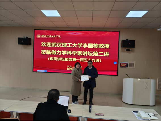 力学专业负责人郝琪教授为李国栋教授颁发了报告证书。此次讲座的成功举办,不仅拓宽了学院教师的教学视野,也进一步激发了教师们的科研工作热情和创新思维,为学院的教学质量建设和教学研究注入了新的活力与动力,推动学院的教学工作不断向前发展。