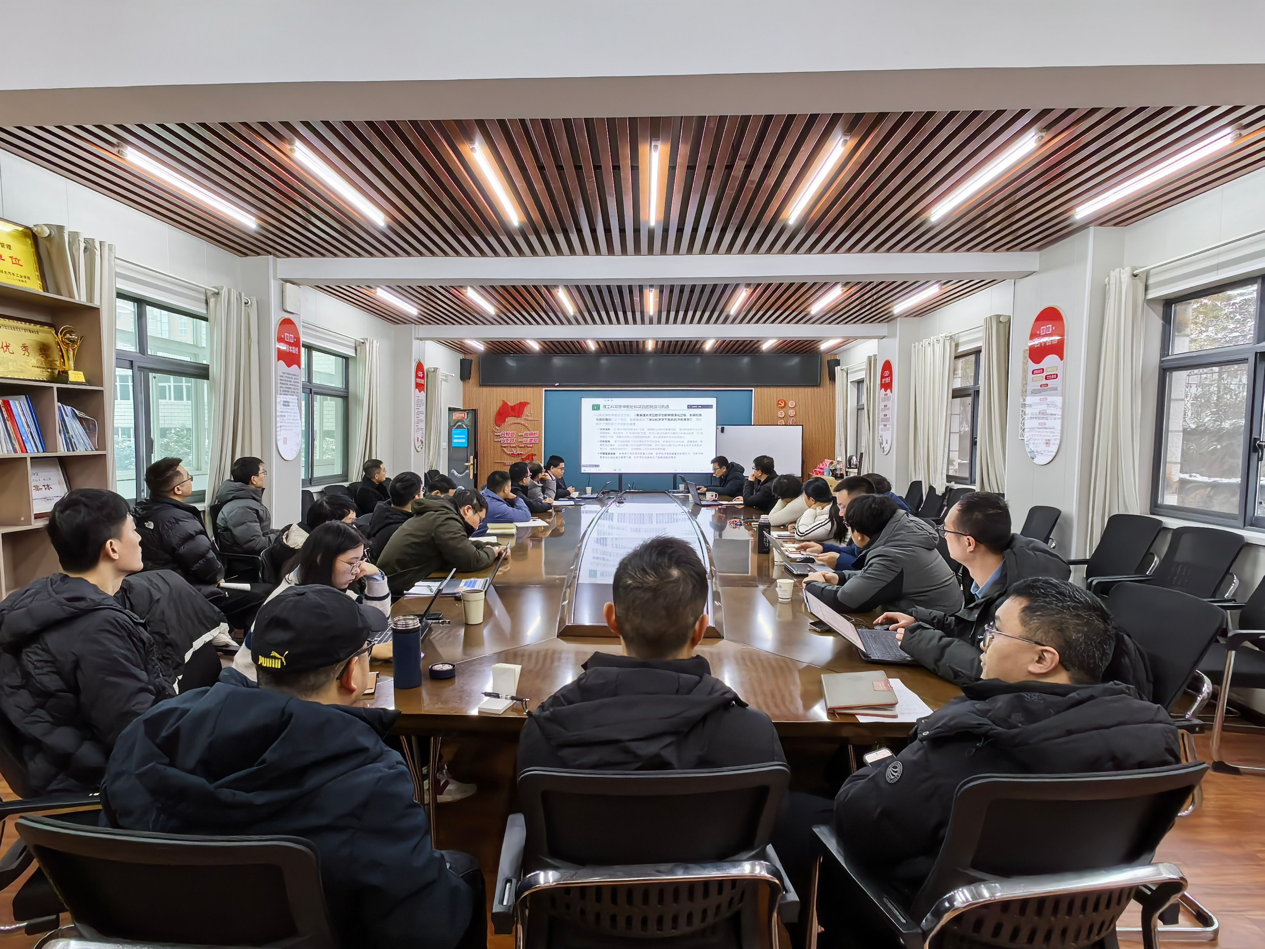 副院长董焱章教授主持,学院全体博士教师在1201会议室集中聆听,并与线上近40名师生代表共同参与研讨。