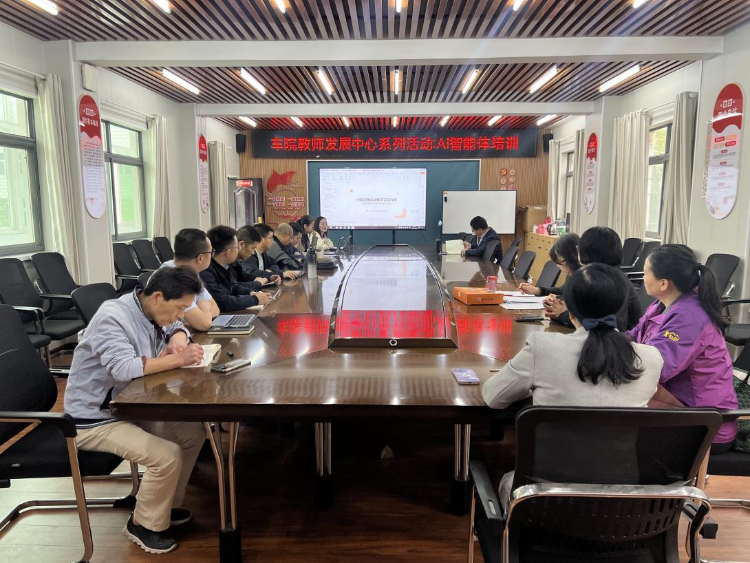 教师发展分中心在党员活动会议室1201组织开展“AI智能体”专题培训活动。本次培训特邀覃玄、贺焕利两位老师担任主讲,分享解读2026年湖北省高教学会组织的武汉AI智能体培训核心内容。学院资深教授、各专业负责人、系部主任、数智化课程申报教师等参加培训。会议由教学院长董焱章教授主持。