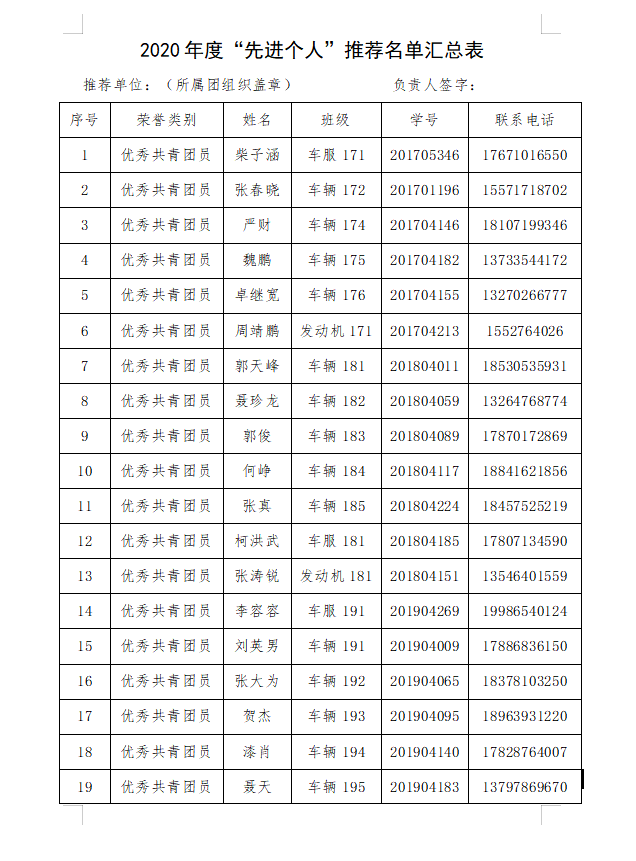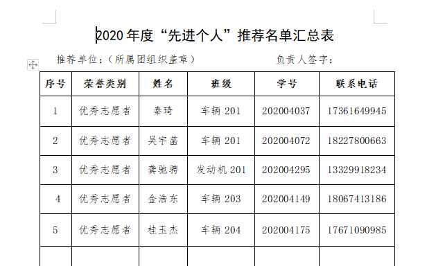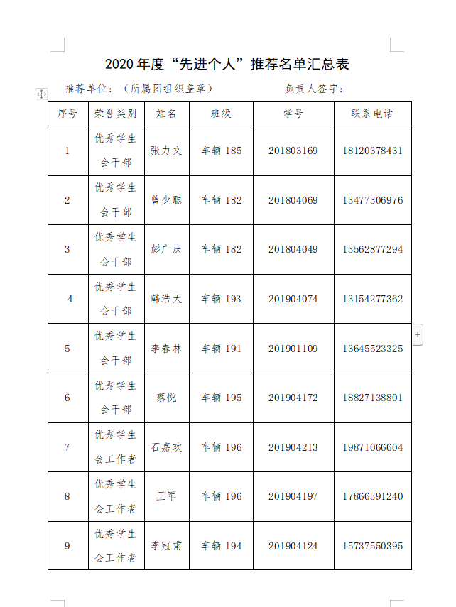 2020年度“先进个人”推荐名单汇总表-换妻 学生会.docx