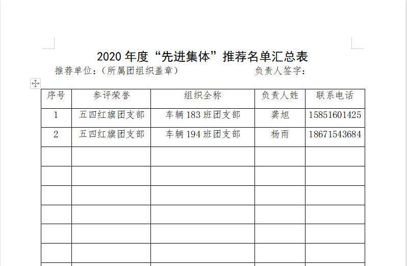 2020年度“先进集体”推荐名单汇总表-换妻 .doc