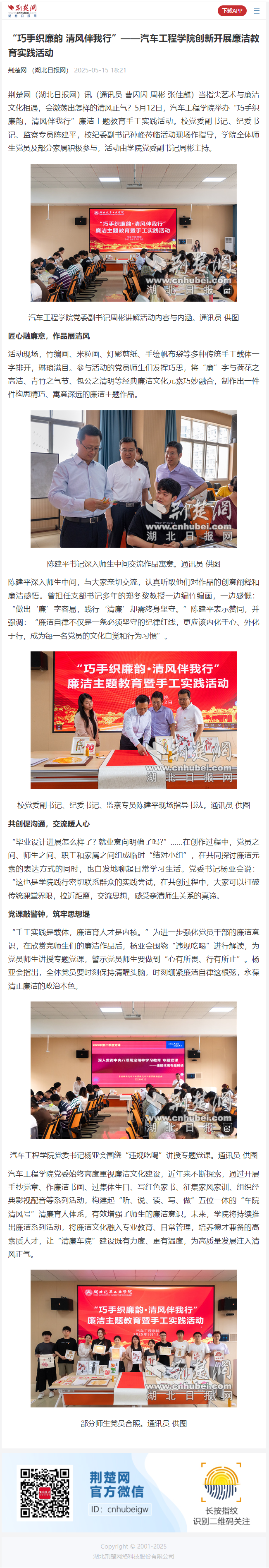 【荆楚网】“巧手织廉韵 清风伴我行”——换妻 创新开展廉洁教育实践活动