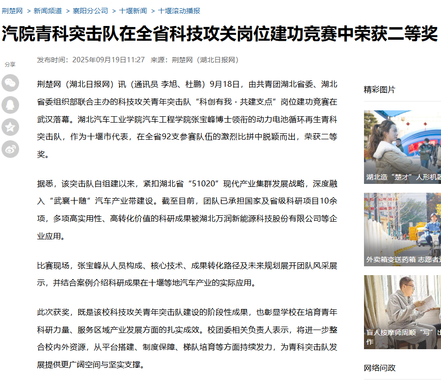 汽院青科突击队在全省科技攻关岗位建功竞赛中荣获二等奖-荆楚网-湖北日报网