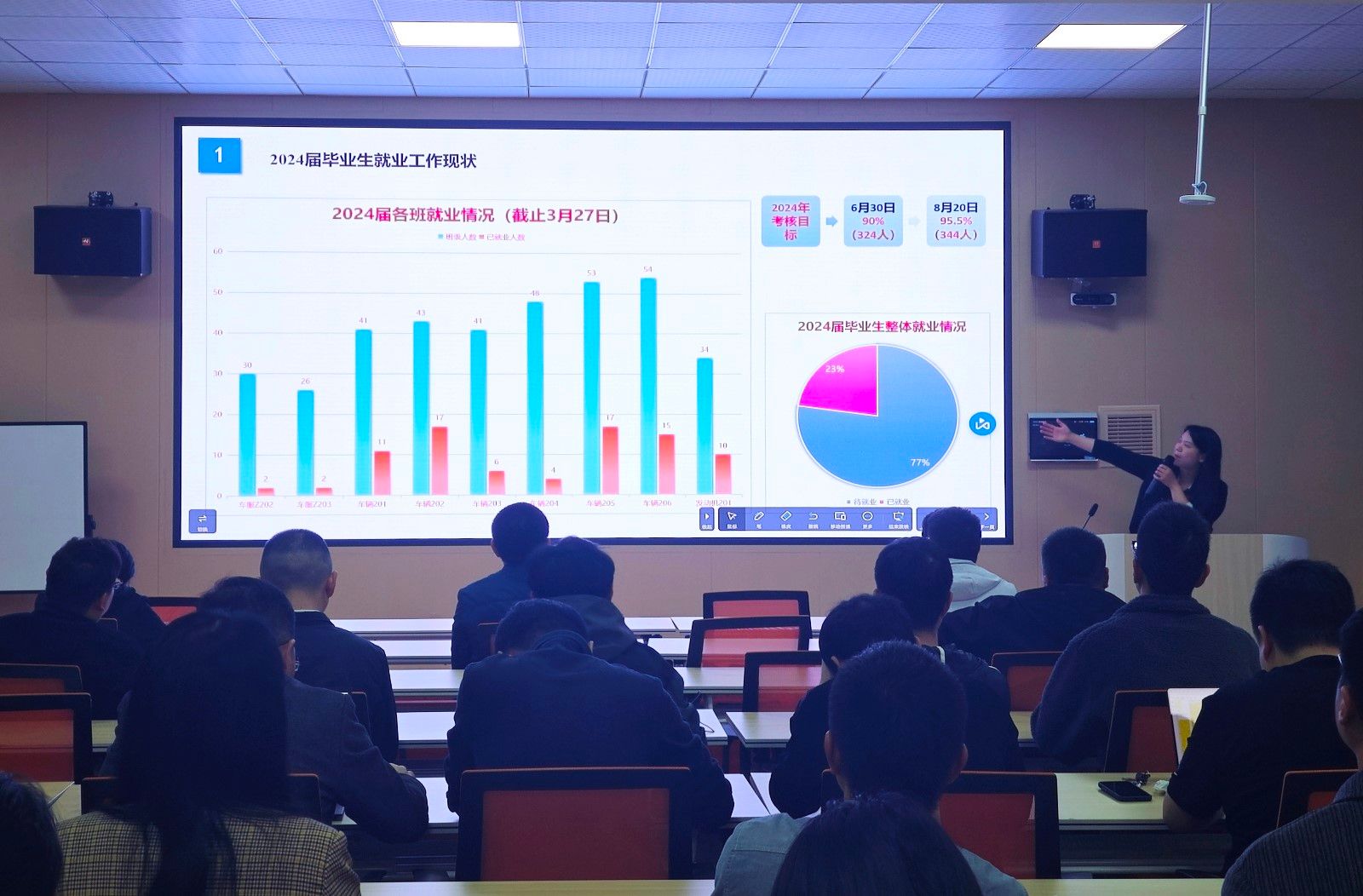 在学院职工之家召开2024年就业工作专题研究会议,精细梳理学院毕业生整体就业形势,分析研判毕业生就业过程中存在的问题与困难,对2024年就业工作进行全面把脉问诊。学院全体教职工参会。会议由分党委副书记周彬主持。