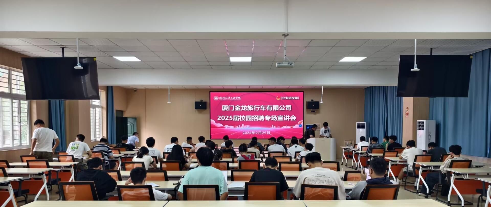 在职工之家举办厦门金龙汽车集团2025届毕业生校园招聘专场宣讲会,邀请旗下厦门金龙旅行车有限公司来校宣讲,学院辅导员及2024届毕业生参加会议。