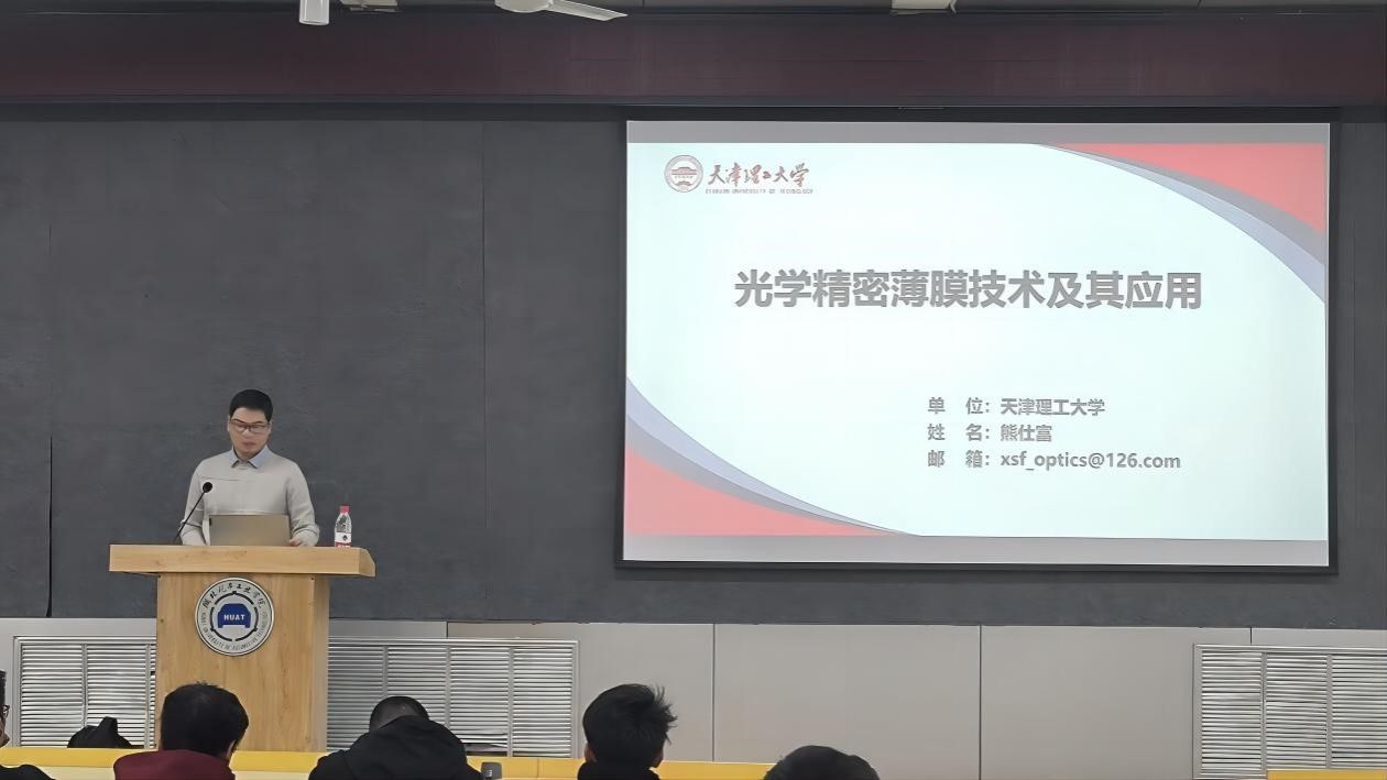 与理学院特邀天津理工大学晶体镀膜实验室负责人、T8级光电工程专业毕业生、校友熊仕富博士,在第六教学楼6113报告厅做了主题为“光学精密薄膜技术及其应用”的学术报告,理学院曾维友老师主持本次活动,换妻