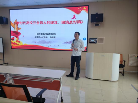 在讲座中,马保青老师专门讲解了“三全育人、五育并举”的相关内涵,并详细分析了马院“施洋班”的实际案例。马保青老师的讲座让与会者深刻体会了“全员、全程、全方位育人”的大思想政治工作格局,构建全员育人、全程育人、全方位育人的育人工作体系,将育人工作渗透到教学、管理、服务的各个方面,从而促进学生的全面发展,培养出“德智体美劳”全面发展的社会主义建设者和接班人。